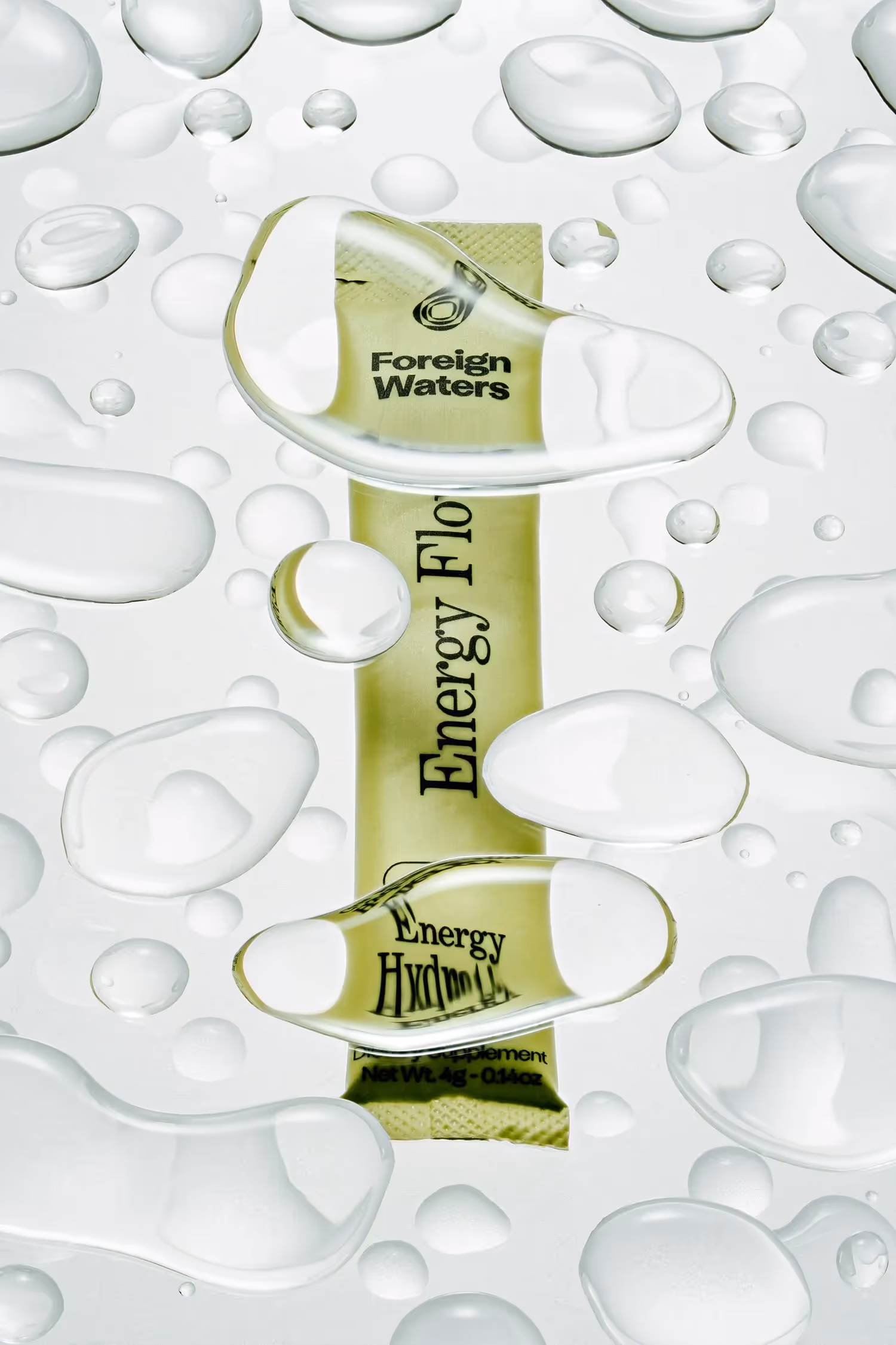 Energy — Hydration — Metabolic Fuel — Cellular Activation. This is Foreign Waters. With a newly minted brand identity meticulously crafted by Mast, Foreign Waters approached me to capture a collection of still and motion assets for the launch of their all-new electrolyte and energy drink brand. Immersing myself in the FW team’s vision and the design language set by Mast, I collaborated closely with the client to develop a look and feel that embodied the brand’s mission—to deliver an energy drink unlike any other. Centered on the pillars of energy, hydration, and gut support, the resulting visual voice was designed to mirror those qualities: bold yet not loud, clean yet never sterile, textured yet soothing, and fully activated without intensity.